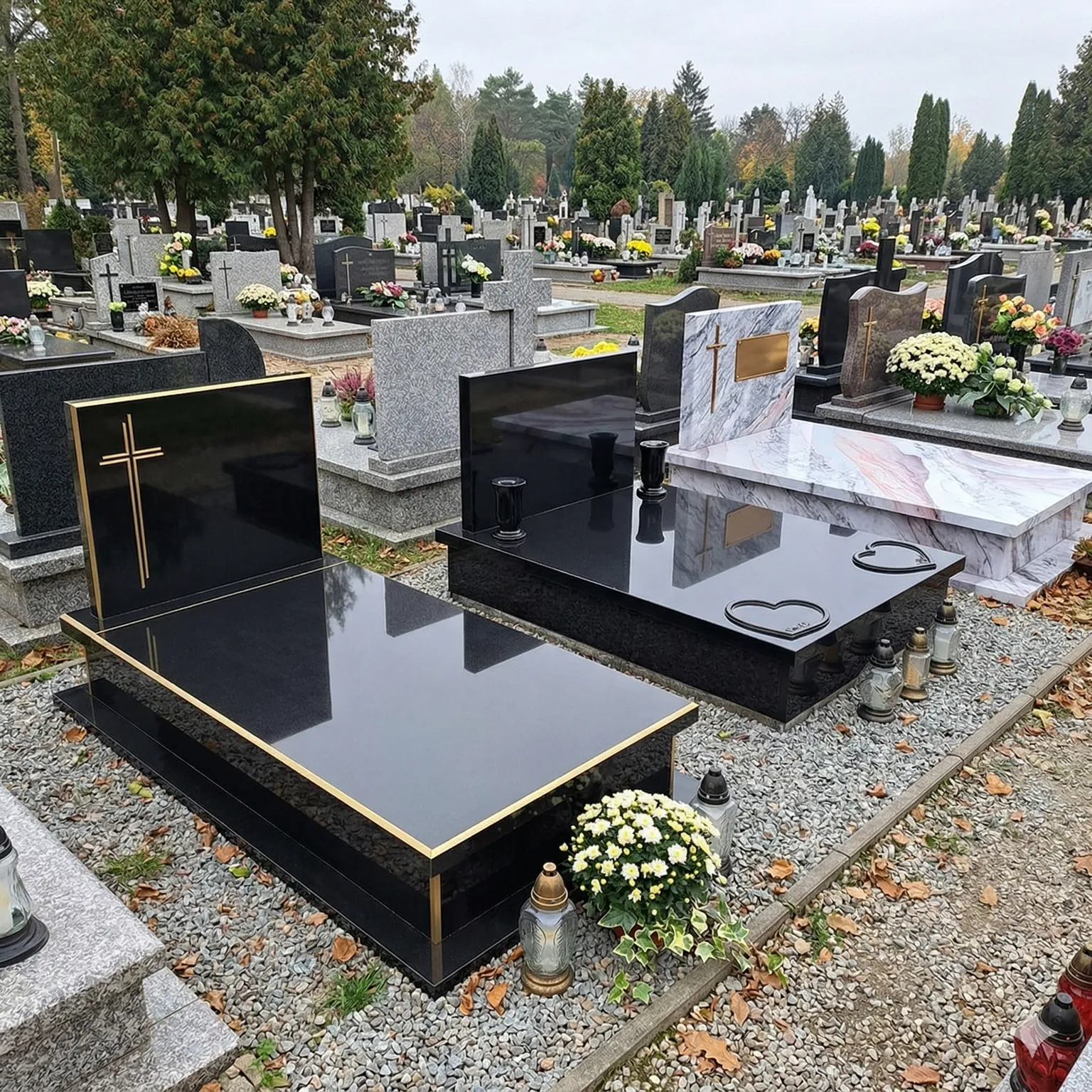 Nasze nagrobki powstają z zaawansowanych materiałów kompozytowych — trwałych, odpornych na mróz, promieniowanie UV i wilgoć. Każdy element jest starannie wykończony i objęty gwarancją.
